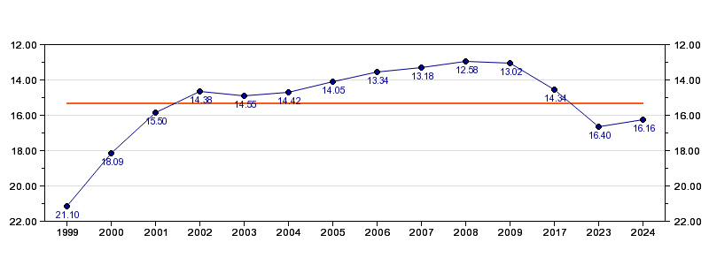 | Forrige tid | 16.16 (2024) |