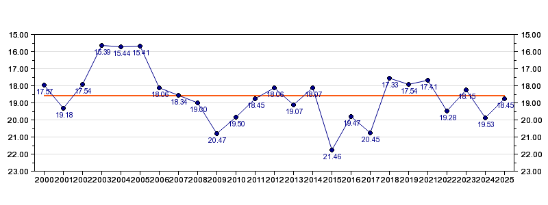 Antall deltagelser25 (i perioden 2000 - 2025)