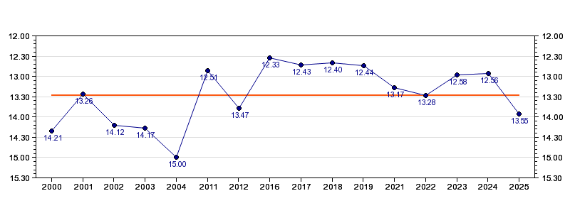 | 2025 | Kalkulator | 13:55 (1299 m/h) | 02:38 (1225 m/h, 94 %) | 06:38 (04:00, 1375 m/h, 105 %) | 12:05 (05:27, 1258 m/h, 96 %) | 13:55 (01:50, 1361 m/h, 104 %) |