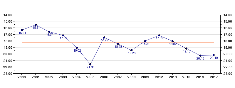 Antall deltagelser15 (i perioden 2000 - 2017)