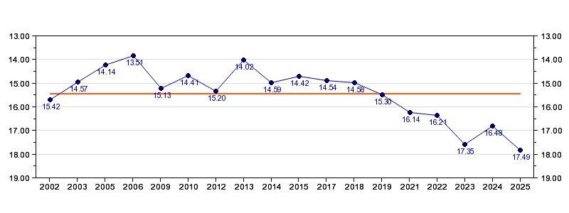 Antall deltagelser18 (i perioden 2002 - 2025)