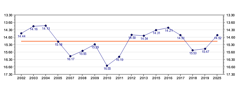 | 2025 | Kalkulator | 14:52 (1216 m/h) | 02:28 (1308 m/h, 107 %) | 06:50 (04:22, 1260 m/h, 103 %) | 12:47 (05:57, 1152 m/h, 94 %) | 14:52 (02:05, 1198 m/h, 98 %) |