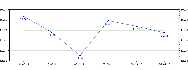 | 04.05.2011 | 10.50 | 18.05.2011 | 11.37 | 05.06.2011 | 12.44 | 22.09.2011 | 11.03 | 09.09.2013 | 11.19 | 26.09.2013 | 11.38 |