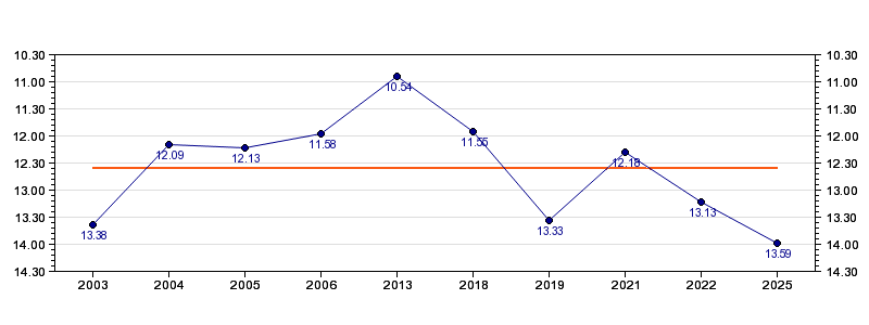 | Antall deltagelser | 10 (i perioden 2003 - 2025) |