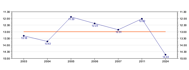 | Forrige tid | 14.43 (2024) |