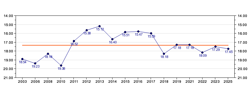 | Antall deltagelser | 17 (i perioden 2003 - 2025) |