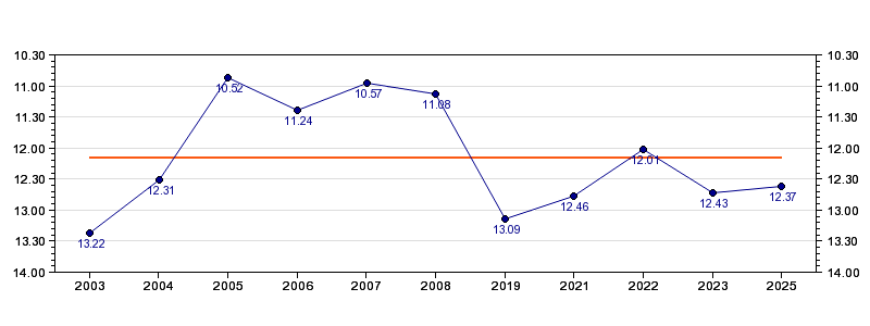 Antall deltagelser11 (i perioden 2003 - 2025)