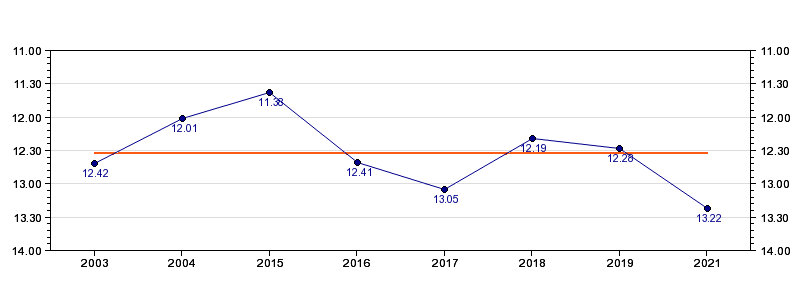 | Forrige tid | 13.22 (2021) |
