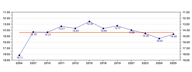 | Antall deltagelser | 12 (i perioden 2004 - 2025) |