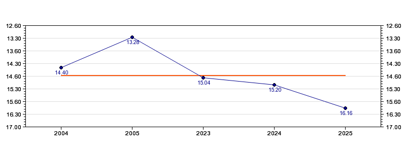 | Forrige tid | 16.16 (2025) |