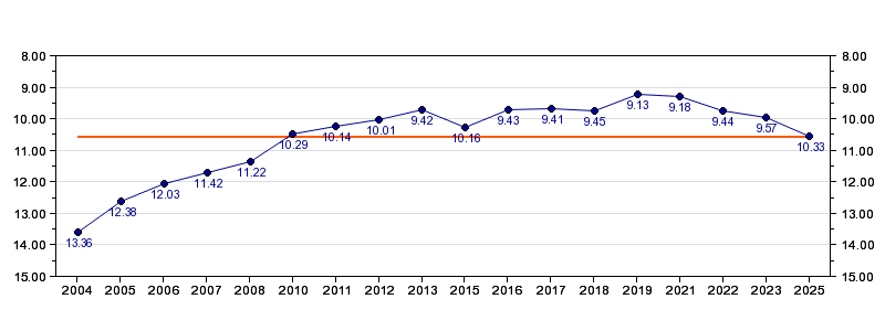 | Forrige tid | 10.33 (2025) |
