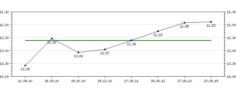 | 27.08.2013 | 11.55 | 23.09.2015 | 11.53 |
