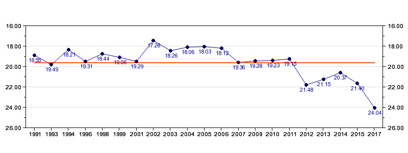| Antall deltagelser | 21 (i perioden 1991 - 2017) |