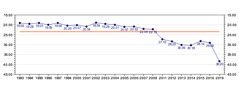 | Forrige tid | 38.20 (2019) |