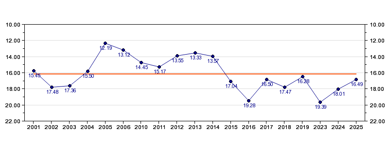 Antall deltagelser19 (i perioden 2001 - 2025)