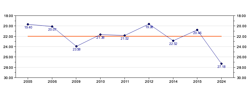 | Forrige tid | 27.18 (2024) |