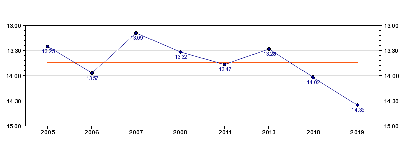 | Forrige tid | 14.35 (2019) |