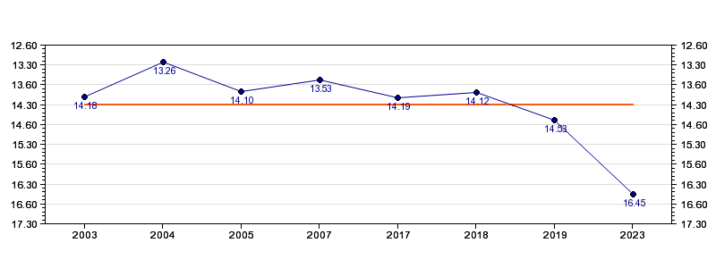| Forrige tid | 16.45 (2023) |