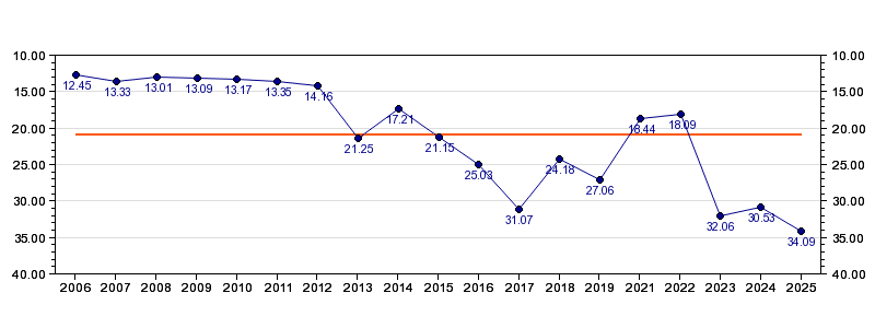 | 2025 | Kalkulator | 34:09 (529 m/h) | 05:07 (630 m/h, 119 %) | 14:45 (09:38, 571 m/h, 107 %) | 28:58 (14:13, 482 m/h, 91 %) | 34:09 (05:11, 481 m/h, 90 %) |