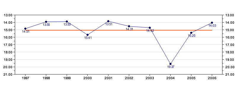Antall deltagelser10 (i perioden 1997 - 2006)