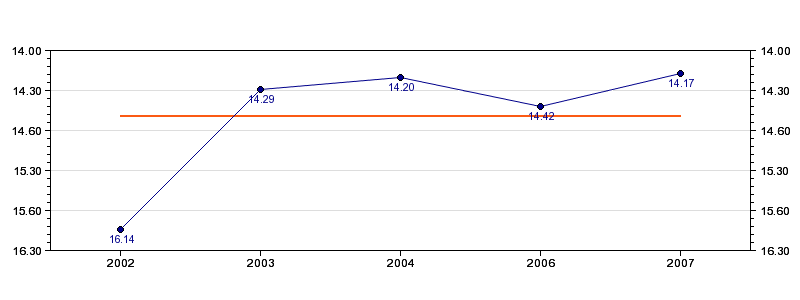 | Forrige tid | 14.17 (2007) |