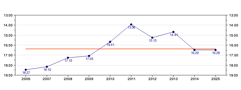 | Forrige tid | 16.28 (2025) |