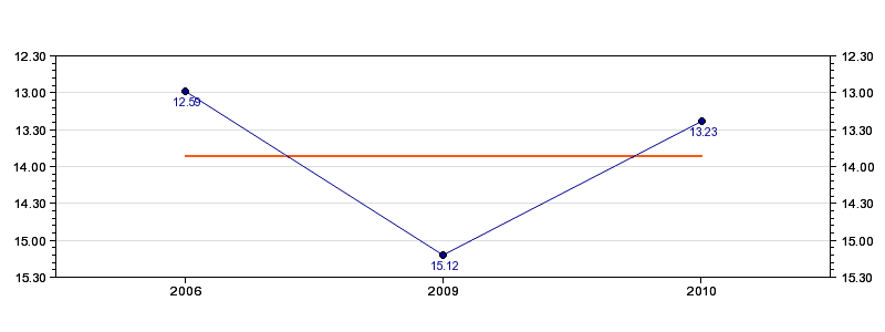 | Forrige tid | 13.23 (2010) |