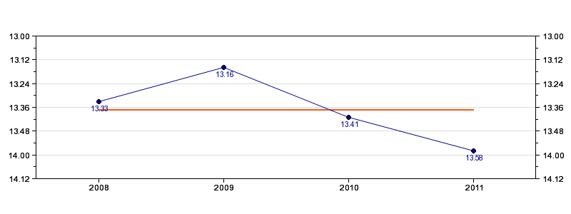 2011Kalkulator13:58 (1294 m/h)02:27 (1317 m/h, 101 %)06:40 (04:13, 1304 m/h, 100 %)12:12 (05:32, 1239 m/h, 95 %)13:58 (01:46, 1412 m/h, 109 %)
