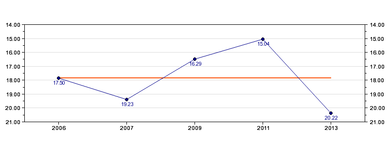 | Forrige tid | 20.22 (2013) |