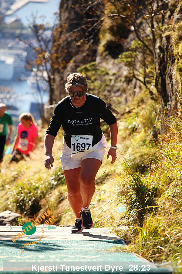 Da Thorbjørn Ludvigsen satte rekord på 7.54 i 2016 hadde han serien 95-99-95-115 og en gjennomsnittlig vertikal hastighet på 2286 meter/time. Kristin Størmer Steira hadde serien 107-96-95-107 da hun satte damerekord på 9:35 i 2013 med en gjennomsnittlig vertikal hastighet på 1884 meter/time. Til sammenligning hadde verdensrekordløpene på en vertikal kilometer (per 1/8/2014) hastighet på henholdsvis 1967 meter/time og 1630 meter/time - men da ble det altså løpt mer enn 3 ganger så langt.