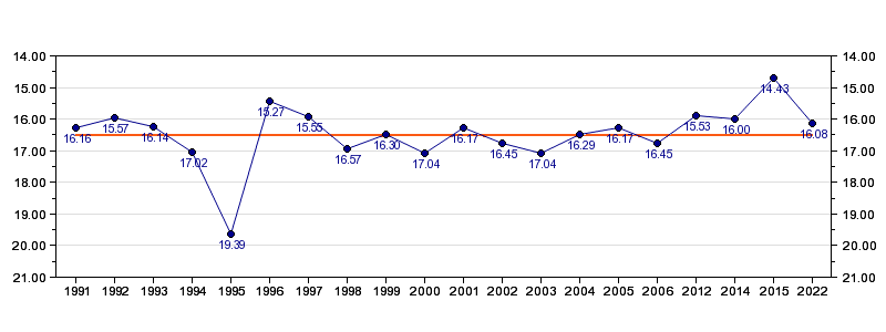 | Antall deltagelser | 20 (i perioden 1991 - 2022) |