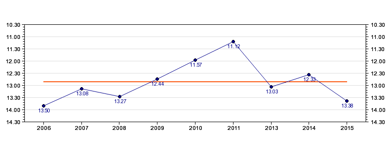| Forrige tid | 13.38 (2015) |