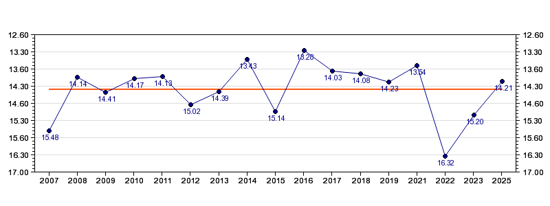| 02.06.2008 | 14.42 | 30.06.2015 | 14.41 |