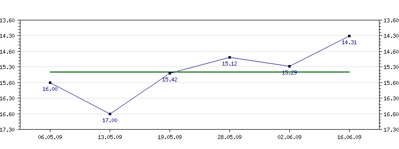 | 06.05.2009 | 16.00 | 13.05.2009 | 17.00 | 19.05.2009 | 15.42 | 28.05.2009 | 15.12 | 02.06.2009 | 15.29 | 16.06.2009 | 14.31 |