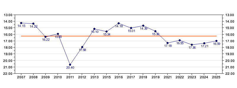 | Antall deltagelser | 17 (i perioden 2007 - 2025) |