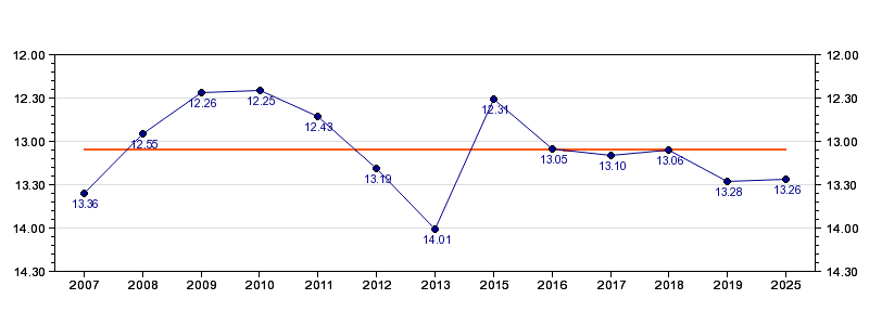 Antall deltagelser13 (i perioden 2007 - 2025)