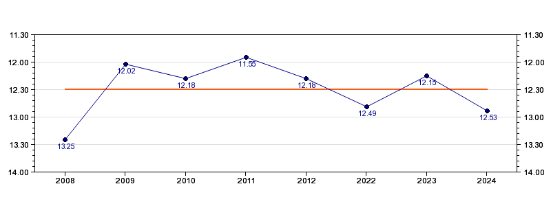 | Forrige tid | 12.53 (2024) |