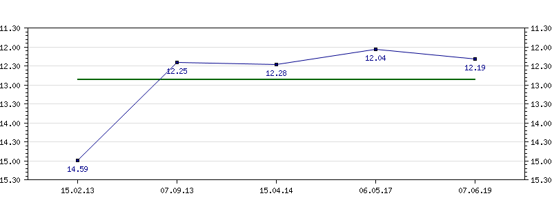 | 15.02.2013 | 14.59 | 07.09.2013 | 12.25 | 15.04.2014 | 12.28 | 06.05.2017 | 12.04 | 07.06.2019 | 12.19 |