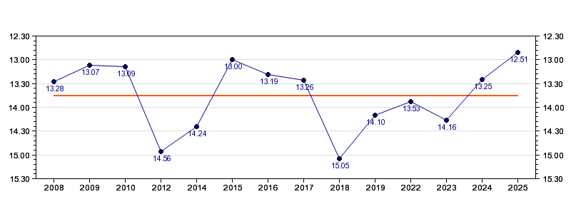 | 2025 | Kalkulator | 12:51 (1407 m/h) | 02:21 (1373 m/h, 97 %) | 06:10 (03:49, 1441 m/h, 102 %) | 11:11 (05:01, 1367 m/h, 97 %) | 12:51 (01:40, 1497 m/h, 106 %) |