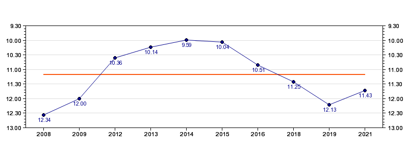 Antall deltagelser10 (i perioden 2008 - 2021)