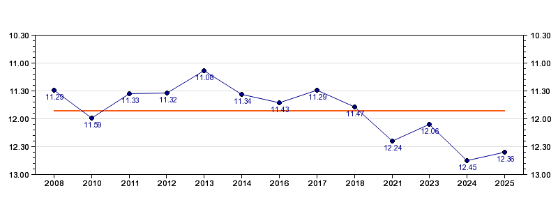 | Forrige tid | 12.36 (2025) |
