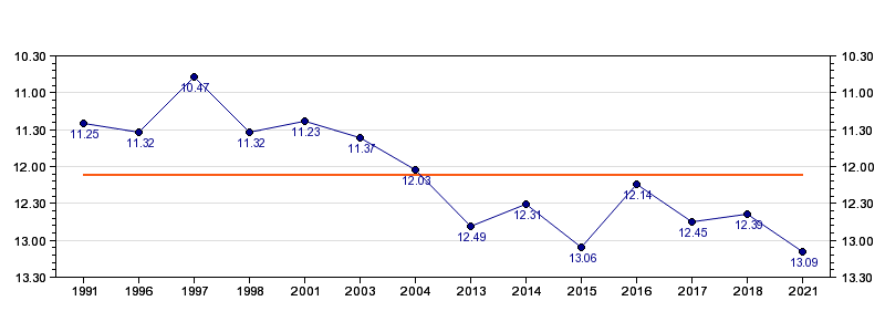 Antall deltagelser14 (i perioden 1991 - 2021)
