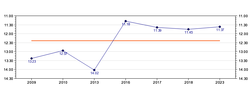 | Forrige tid | 11.37 (2023) |