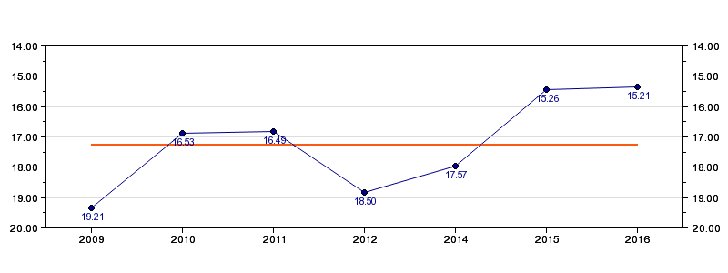 | Forrige tid | 15.21 (2016) |