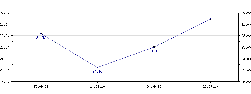 | 15.09.2009 | 21.50 | 14.09.2010 | 24.46 | 20.09.2010 | 23.00 | 25.09.2010 | 20.32 |