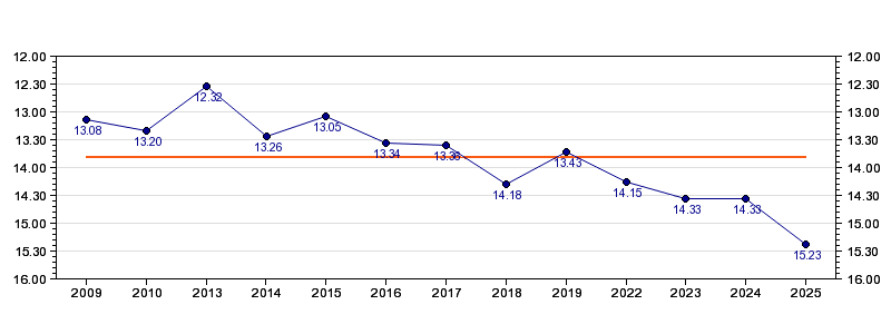 Antall deltagelser13 (i perioden 2009 - 2025)