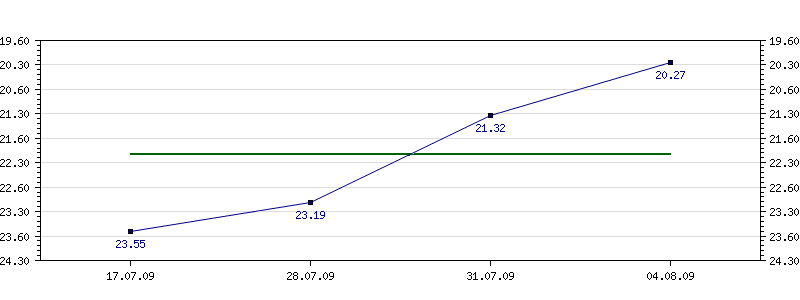 | 17.07.2009 | 23.55 | 28.07.2009 | 23.19 | 31.07.2009 | 21.32 | 04.08.2009 | 20.27 |