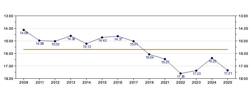 Antall deltagelser14 (i perioden 2009 - 2025)