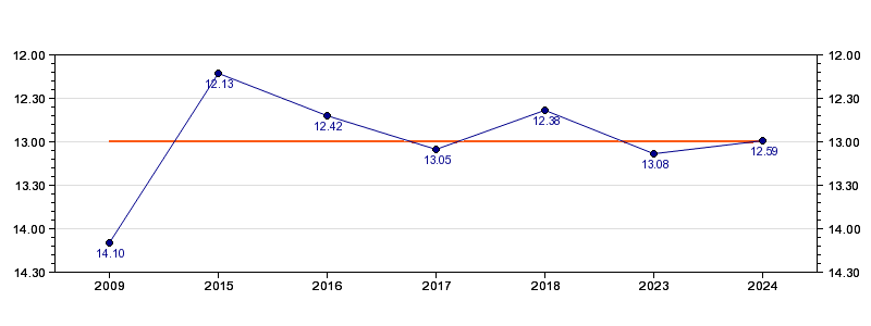 | Forrige tid | 12.59 (2024) |