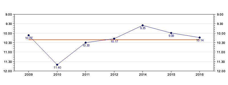 | Forrige tid | 10.14 (2016) |